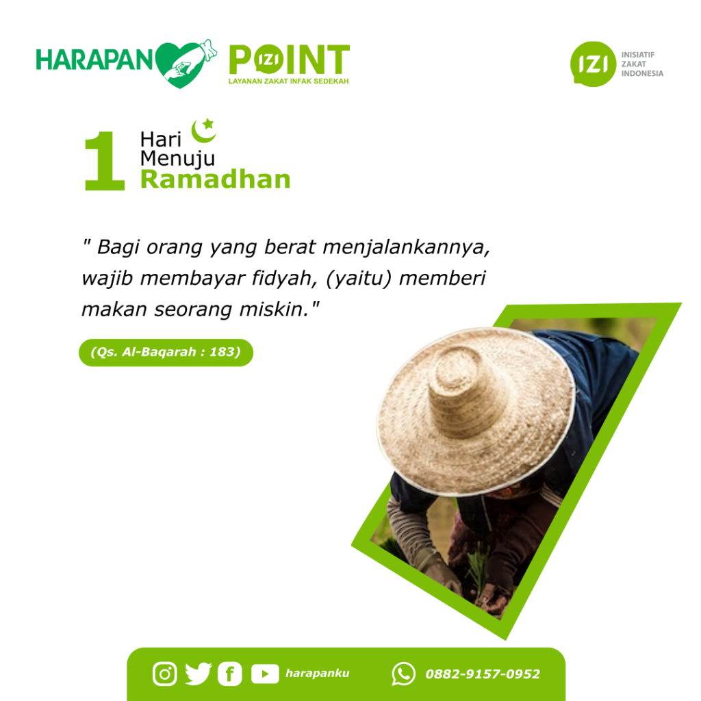 1 Hari Menuju Ramadhan Leave a Comment / Berita, LAZISHA / By Humas Ybi “Bagi orang yang berat menjalankannya, wajib membayar fidyah, (yaitu) memberi makan seorang miskin.”(Qs. Al-Baqarah : 183)