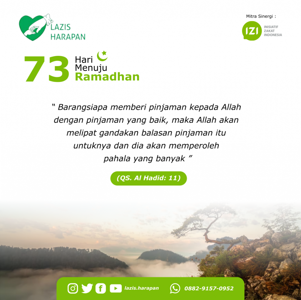 73 Hari Menuju Ramadhan Leave a Comment / Berita, LAZISHA / By Humas Ybi “ Barangsiapa memberi pinjaman kepada Allah dengan pinjaman yang baik, maka Allah akan melipatgandakan balasan pinjaman itu untuknya dan dia akan memperoleh pahala yang banyak ” (QS. Al Hadid: 11)