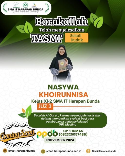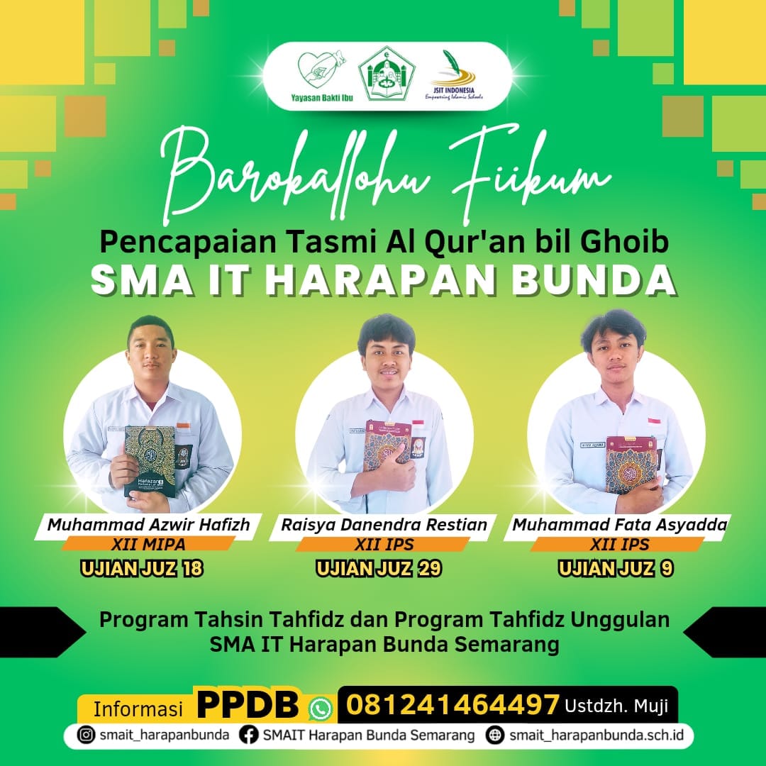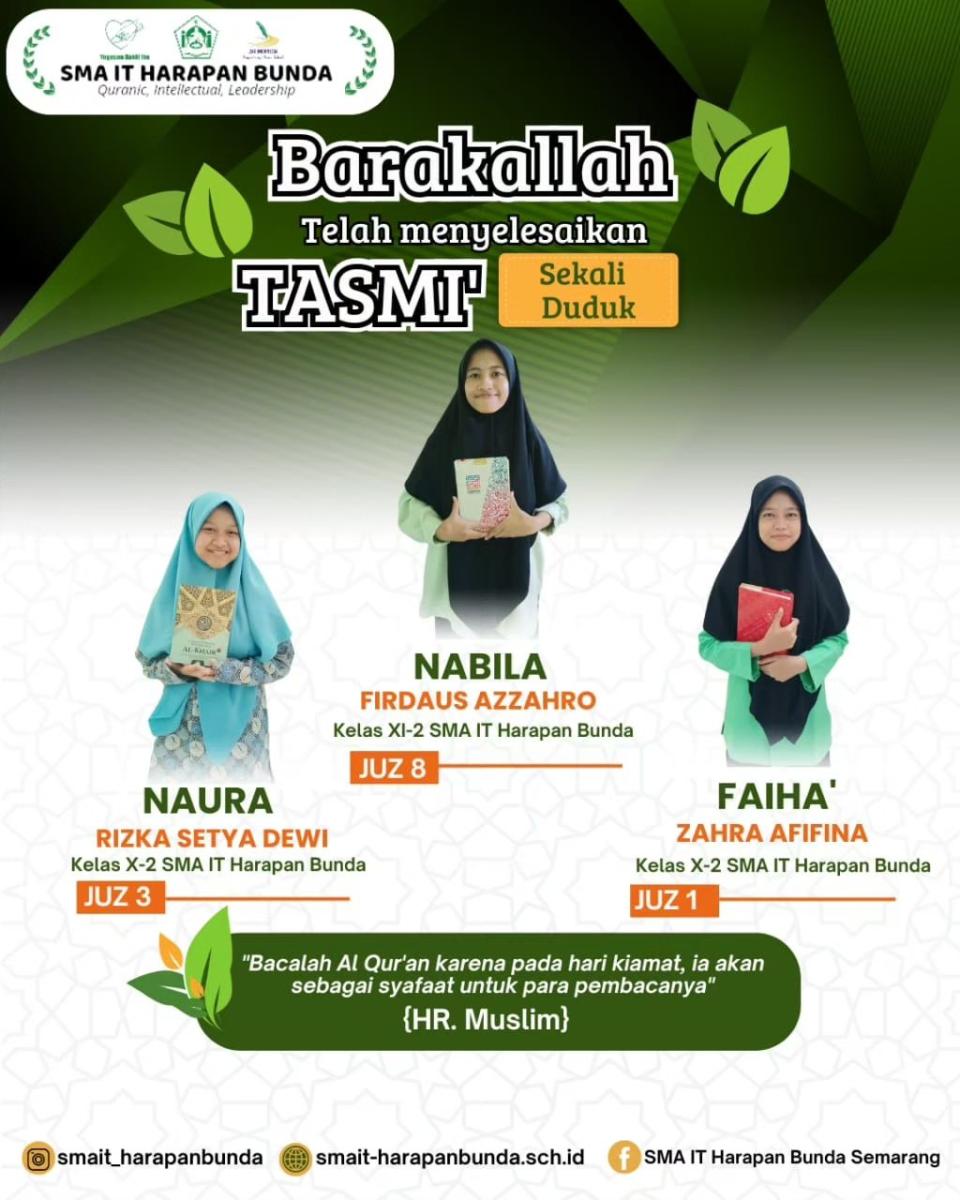 Barakallahu fiikum kepada siswa siswi SMA Islam Terpadu Harapan Bunda yang sudah menyelesaikan tasmi’...