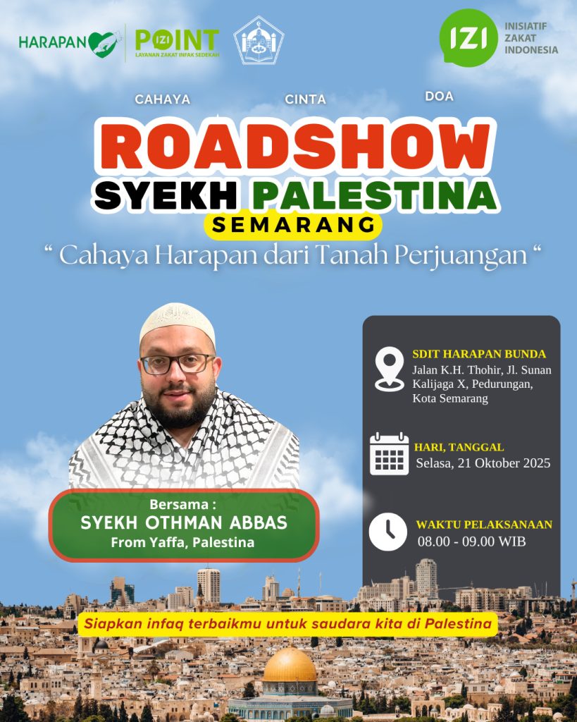 🇵🇸 ROADSHOW SYEKH PALESTINA GOES TO SMAIT HARAPAN BUNDA 🇵🇸🌙”Cahaya Harapan dari Tanah Perjuangan”🌙 Dua tahun sudah bumi Palestina dilanda genosida, dan kini mulai terdengar kabar gencatan senjata. Namun, perjuangan saudara-saudara kita di sana belum usai, Mereka berusaha terus bangkit dalam keterbatasan. InsyaAllah anak-anak akan mendengarkan kisah perjuangan umat di Bumi Al-Aqsha dan tausiyah penuh …