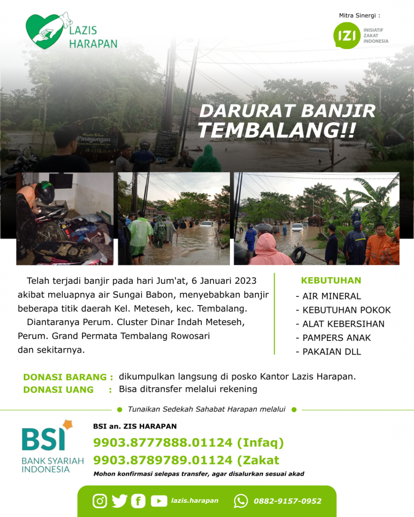 ✅ DONASI BARANG : dikumpulkan langsung di posko Kantor Lazis Harapan.