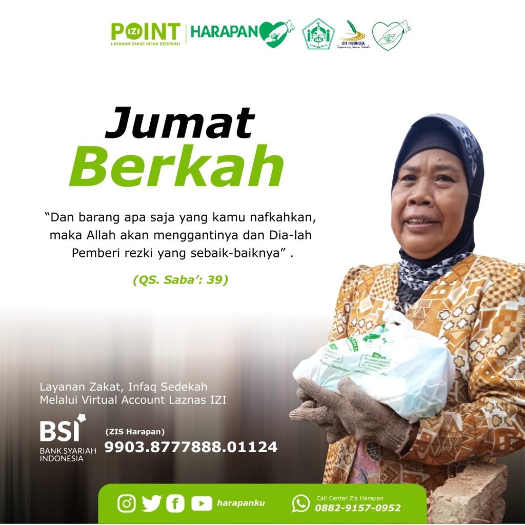 Jumat Berkah Leave a Comment / Berita, KB TK, LAZISHA, RUMAH TAHFIDZ, SD, SMA, SMP / By Humas Ybi Jumat Berkah“Dan barang apa saja yang kamu nafkahkan, maka Allah akan menggantinya dan Dia-lah Pemberi rezki yang sebaik-baiknya”.(Qs. Saba’ : 39)