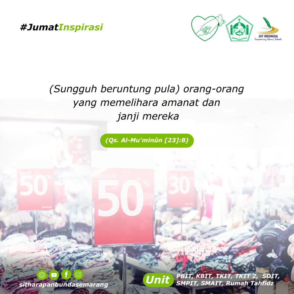 Jumat Inspirasi Leave a Comment / Berita, YBI / By Humas Ybi “(Sungguh beruntung pula) orang-orang yang memelihara amanat dan janji mereka”(Qs. Al-Mu’minum [23]:8)