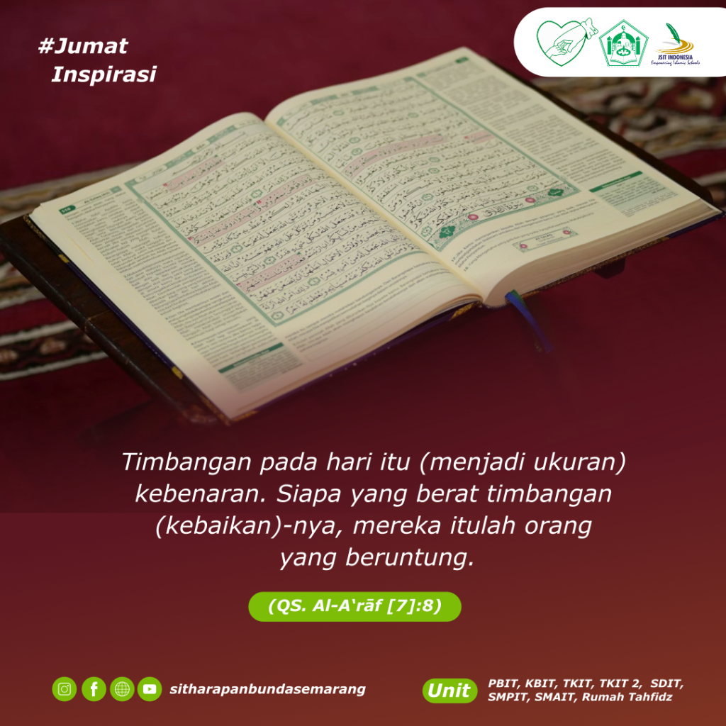 “Timbangan pada hari itu (menjadi ukuran) kebenaran. Siapa yang berat timbangan (kebaikan)-nya, mereka itulah orang yang beruntung.”