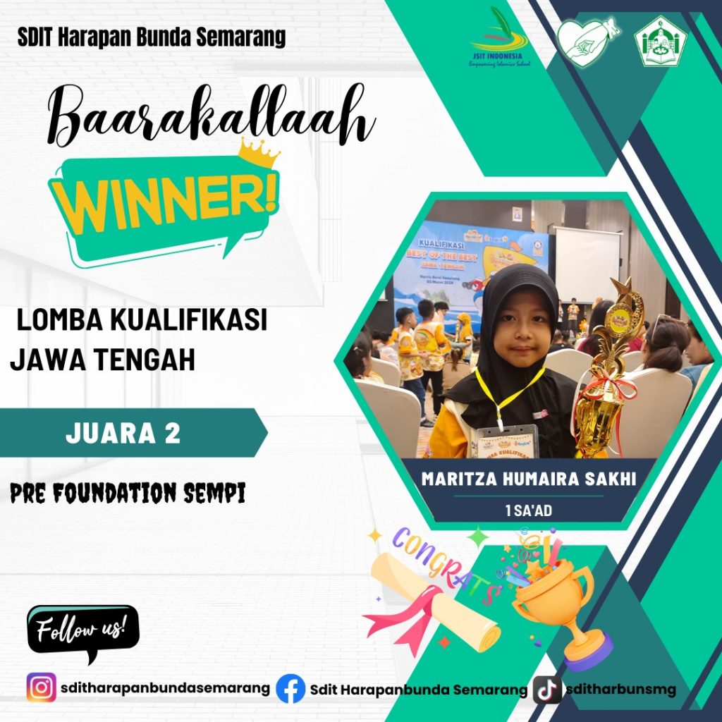 Maritza Humaira Sakhi (1 Sa’ad) Juara 2 Pre Foundation SEMPI Lomba kualifikasi Jawa Tengah