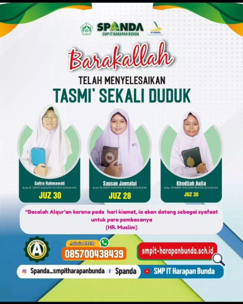 Semoga prestasi yang diperoleh dapat menginspirasi siswa siswi SPANDA untuk semakin bersemangat dalam menghafal Al Qur’an. Aamiin Wassalamualaikum Wr Wb