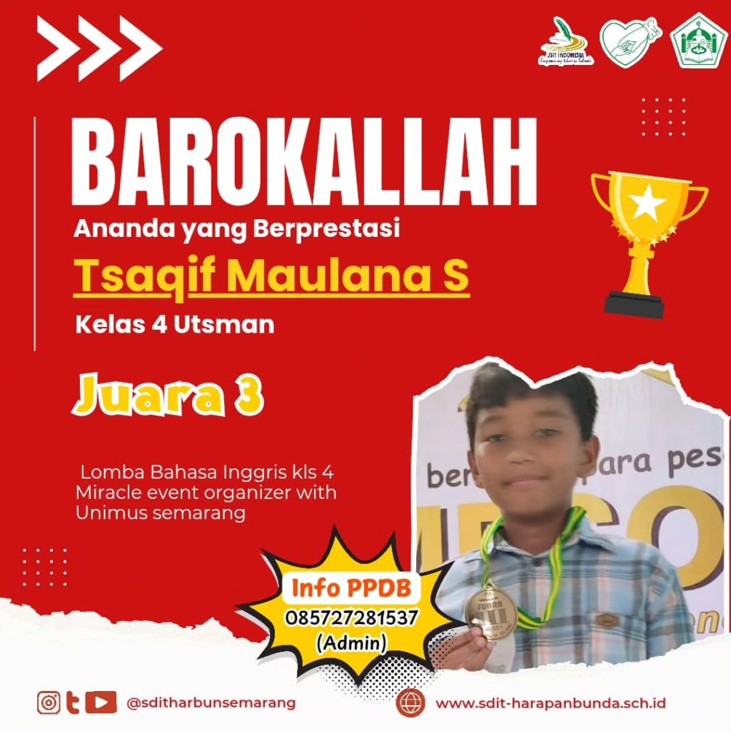 Semoga prestasi yang diraih dapat menginspirasi murid-murid SDIT Harapan Bunda Semarang untuk semakin bersemangat untuk berprestasi. Aamiin