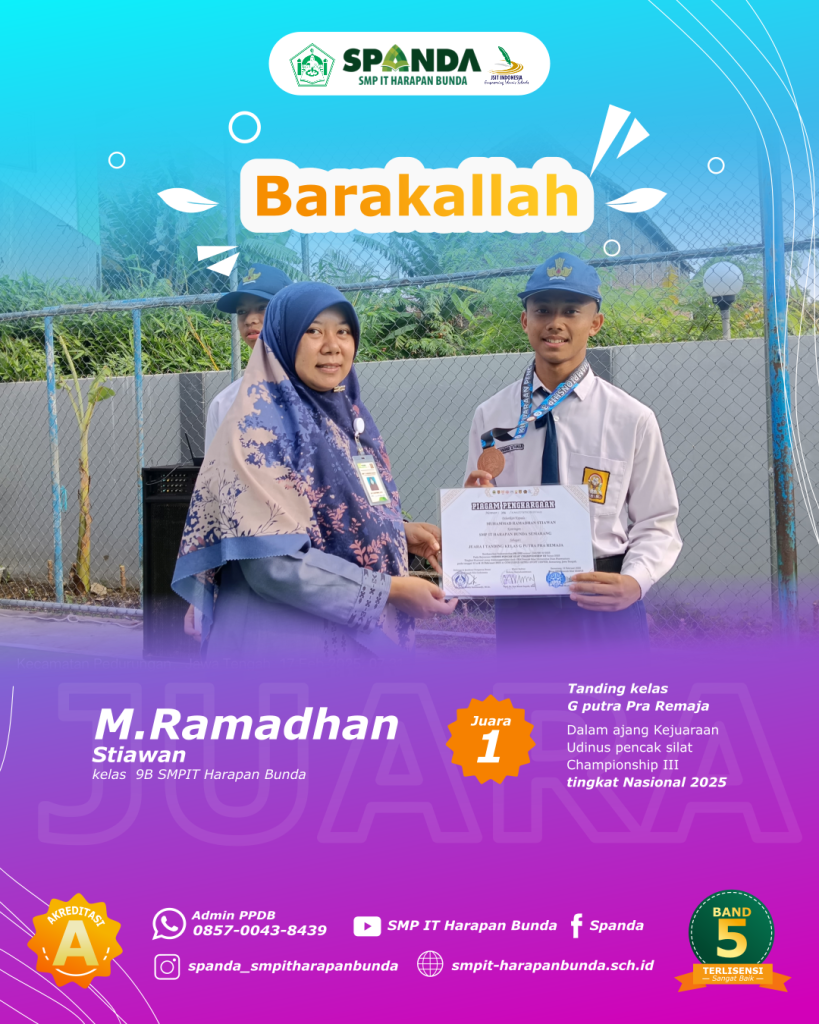 Semoga prestasi yang diraih dapat menginspirasi murid-murid SMPIT Harapan Bunda Semarang untuk semakin bersemangat untuk berprestasi. Aamiin
