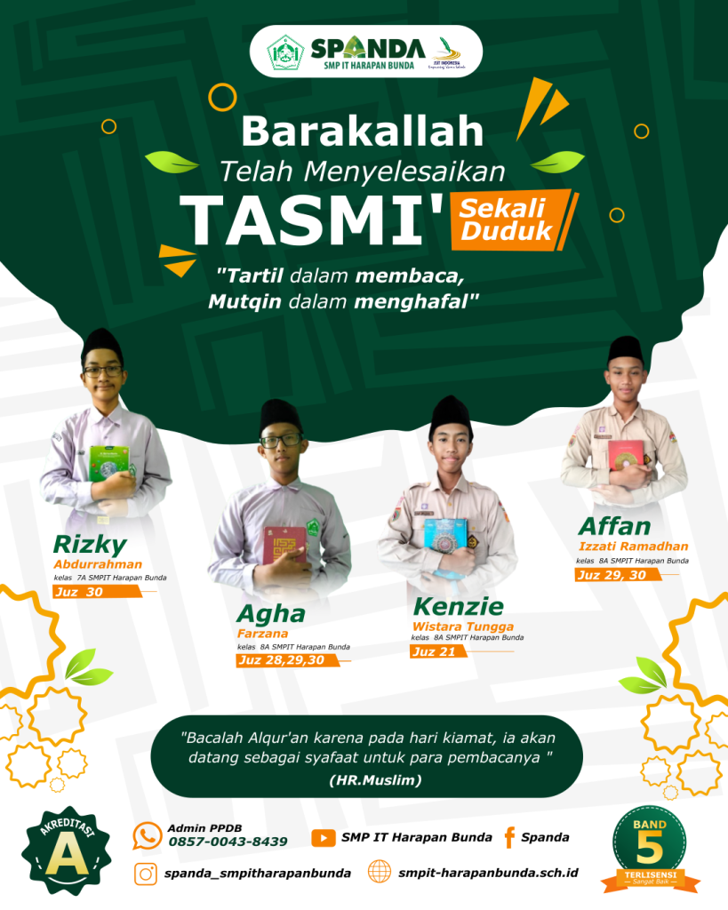 Semoga prestasi yang diraih dapat menginspirasi siswa-siswi SPANDA untuk semakin bersemangat dalam menghafal Al Qur’an. _Aamiin_