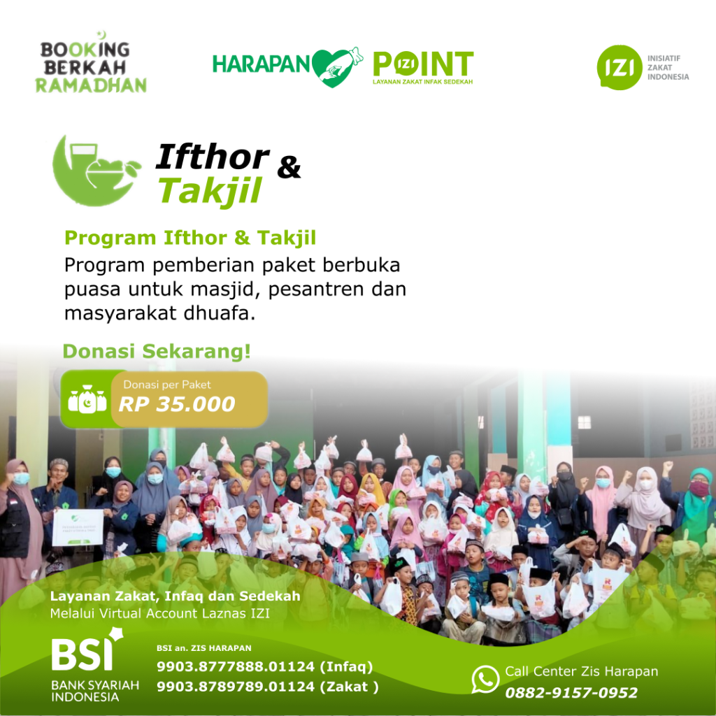 Program Ifthor dan Takjil Leave a Comment / Berita, KB TK, LAZISHA, RUMAH TAHFIDZ, SD, SMA, SMP / By Humas Ybi Program pemberian paket berbuka puasa untuk masjid, pesantren dan masyarakat dhuafa.